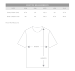 Short body, dropped shoulders, neck ribbing, side seamed, shoulder to shoulder tape, double needle hems, preshrunk to minimise shrinkage